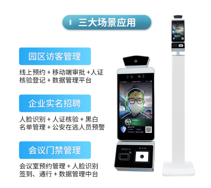 数字哨兵的升级从三方面拓展,充分满足不同类型的用户的不同需求。访客管理方面:顺利获得线上预约+移动端审批+人证核验登记+数据管理平台的模式,充分解决了访客拜访的问题。企业招聘方面:人脸识别+人证核验+黑白名单管理+公安在逃人员预警;在实名方面保障每个面试人员的实名性。不仅如此凯发K8国际还推出了新的会议门禁套餐,顺利获得会议室预约管理+人脸识别签到、通行+数据管理中台,充分解决员工的会议考勤问题。
